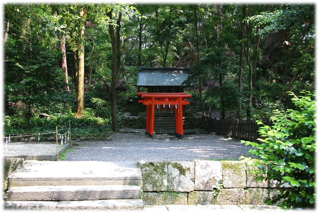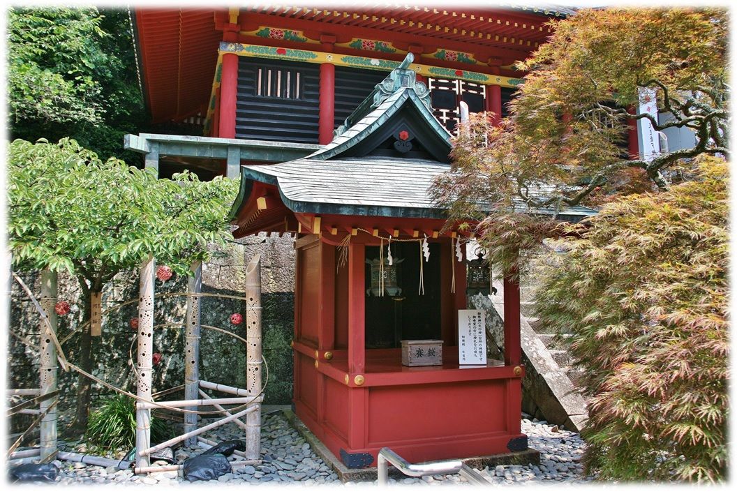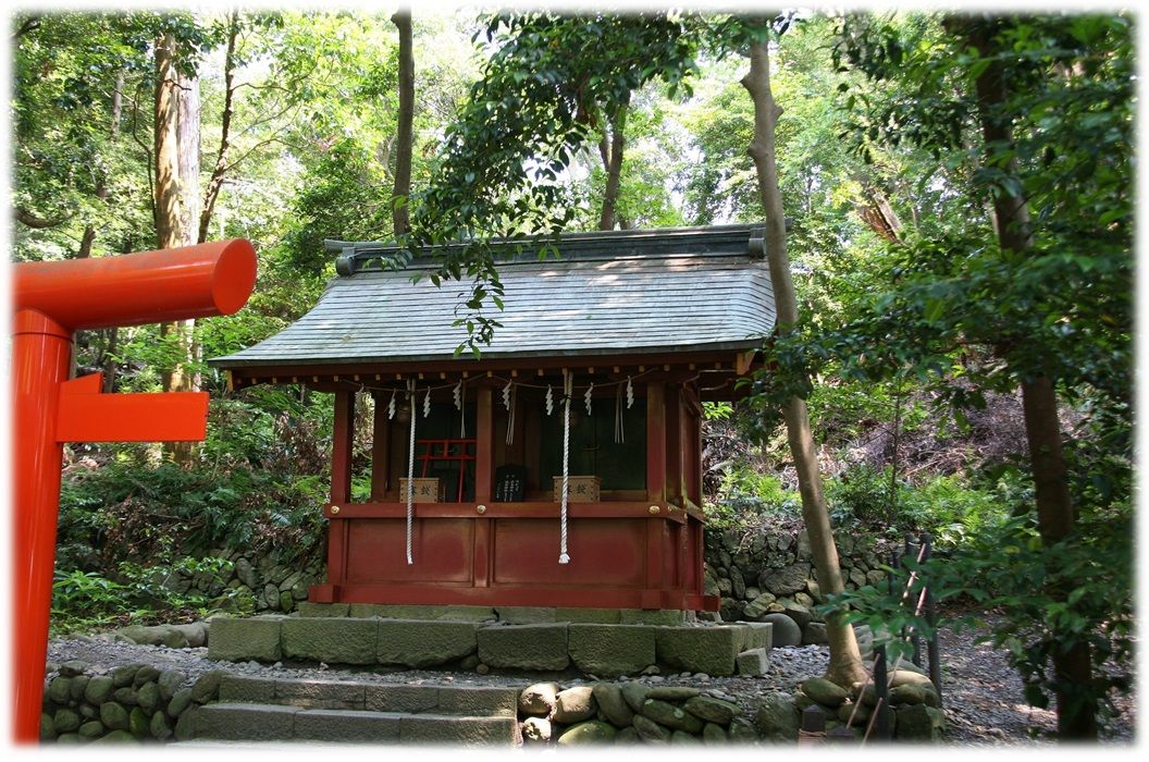 赤い鳥居の末社稲荷神社、末社厳島神社との合殿