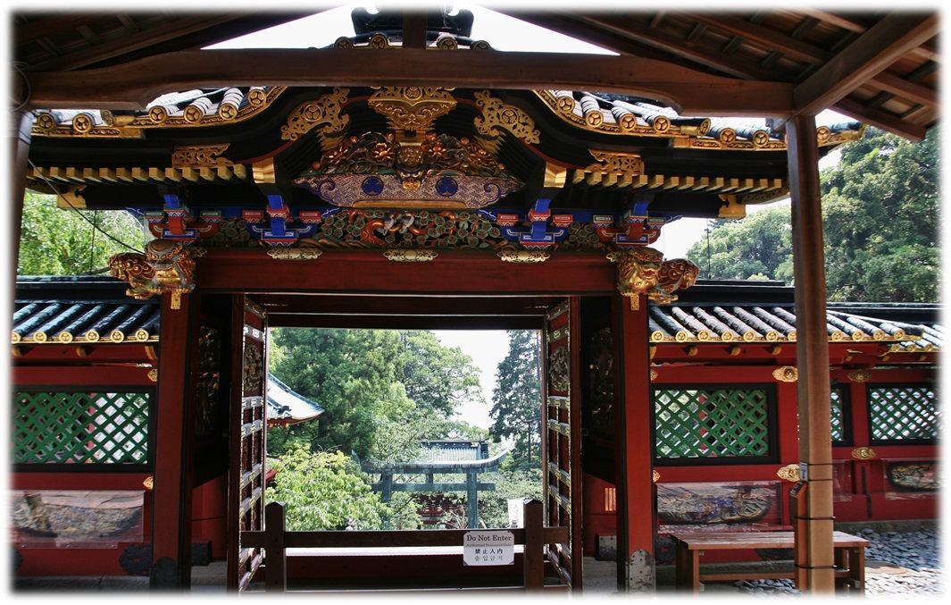 軒下の「東照大権現」の扁額は、後水尾天皇により宸筆され、勅額御門とも呼ばれます