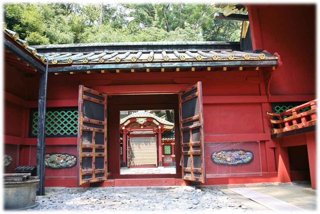 朱の透塀、三つ葉葵の紋が入った金箔瓦、透かし彫り・・・・・豪華