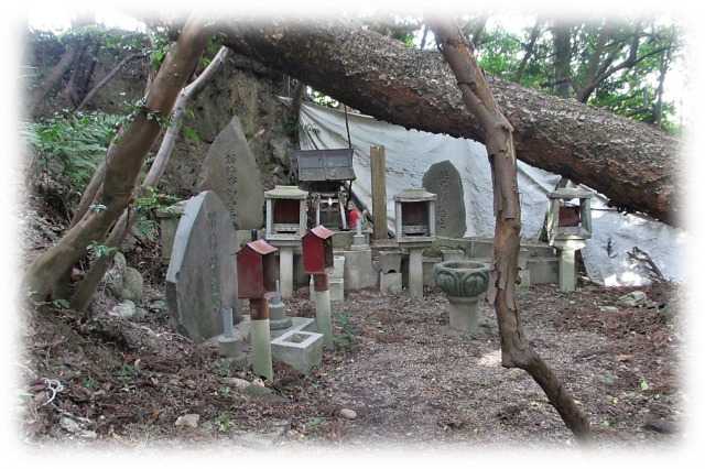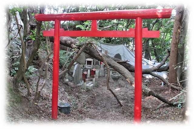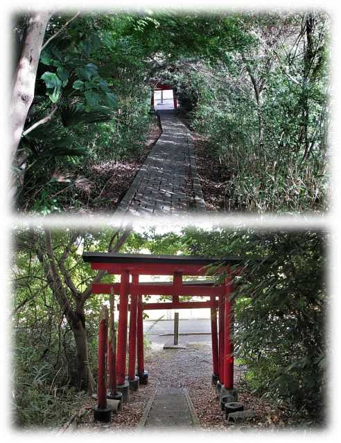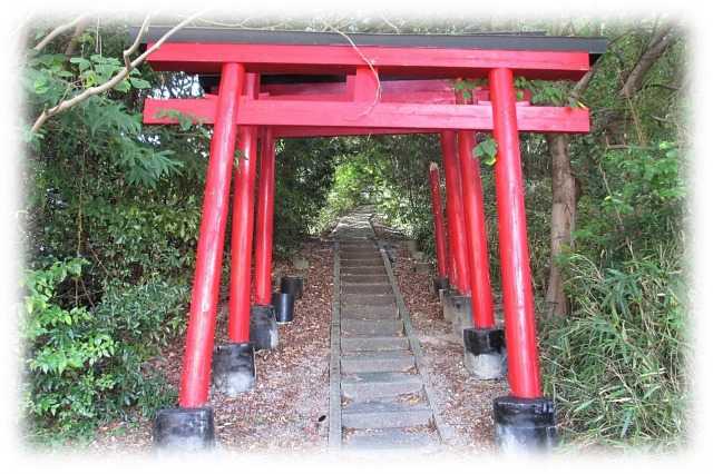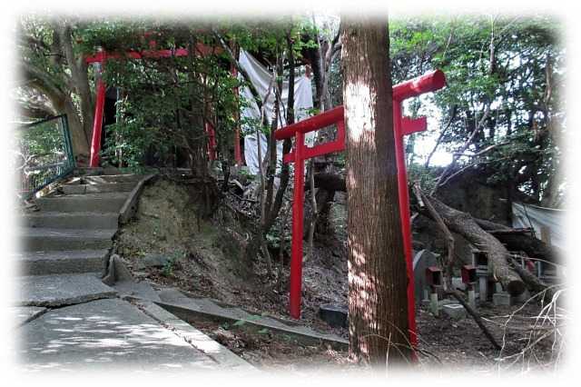 参道入口には5つの鳥居があったようです、奥の二本は既に朽ち果て土台を残すのみ。