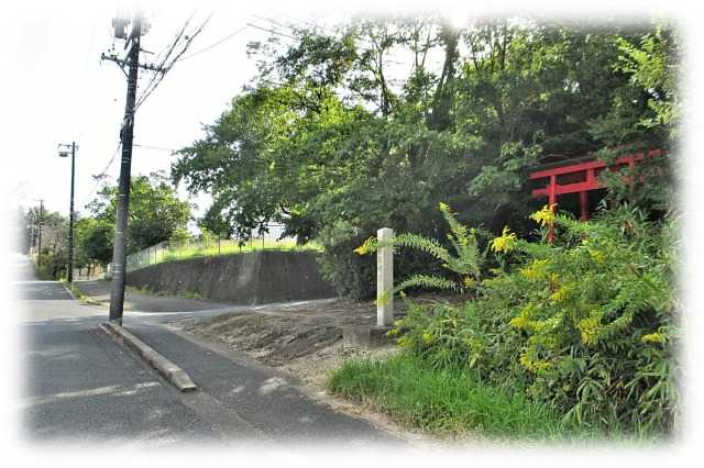 道路沿いに社頭があり、社標と赤い鳥居が目印となります、とは言ったものの。