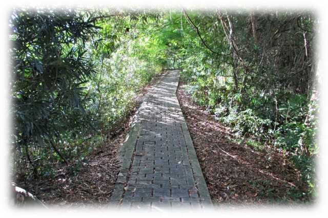 参道は山の稜線に付けられているようで、左は切り立った崖、右は緩やかに下っています。