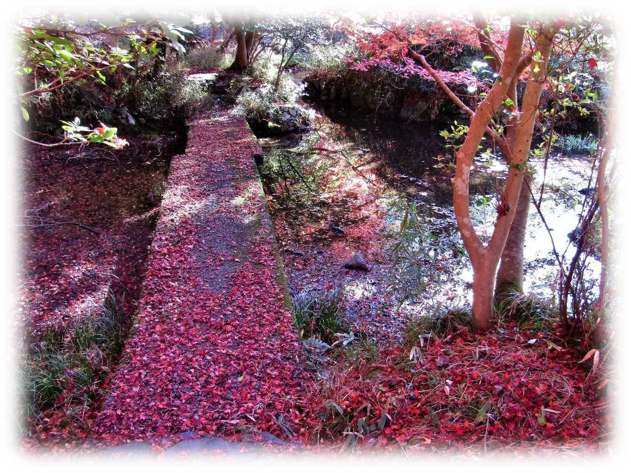 ピークを過ぎた紅葉は少しがっかりだったが、庭の片隅で咲く山茶花の赤は色鮮やかだった。
