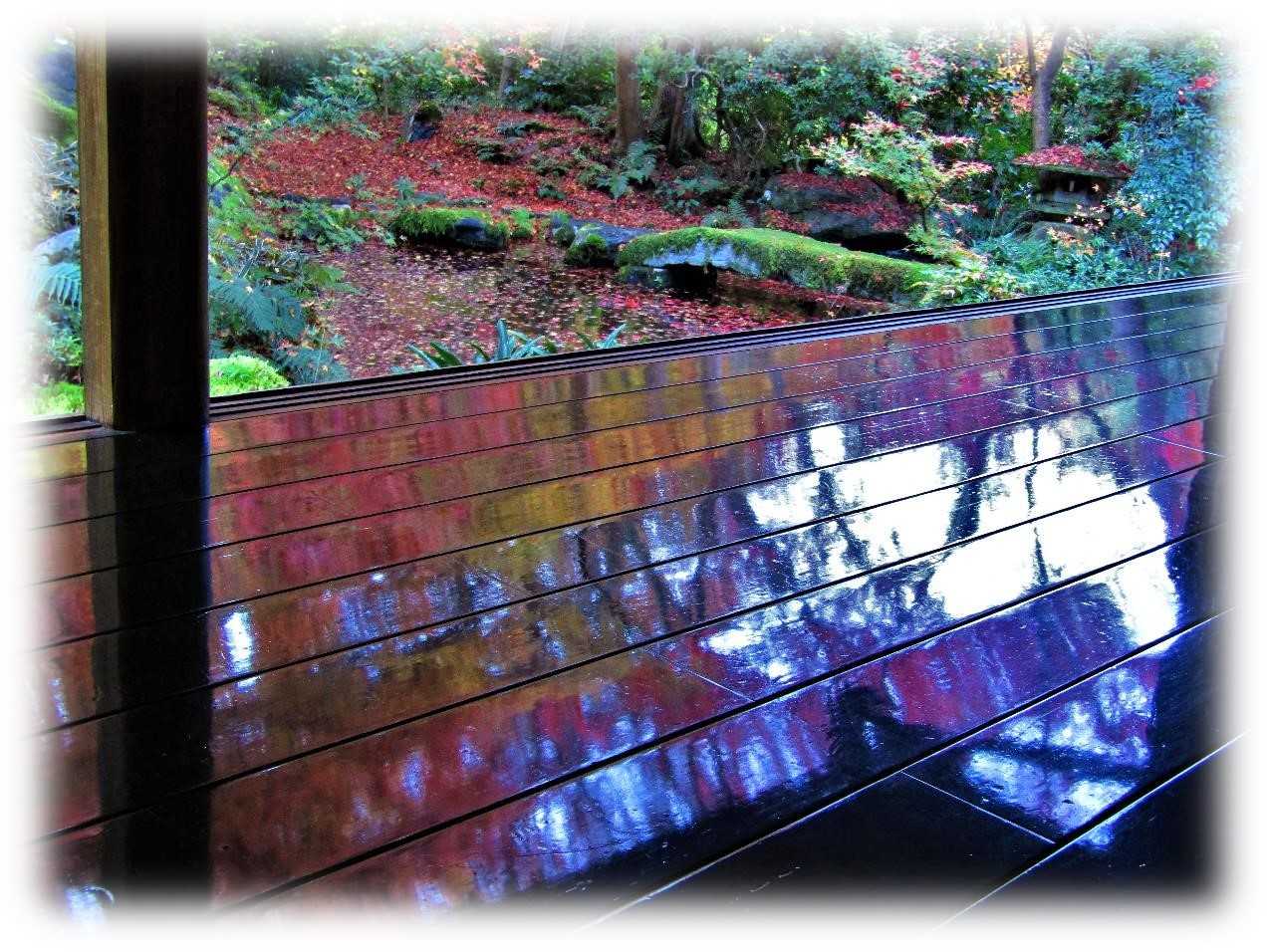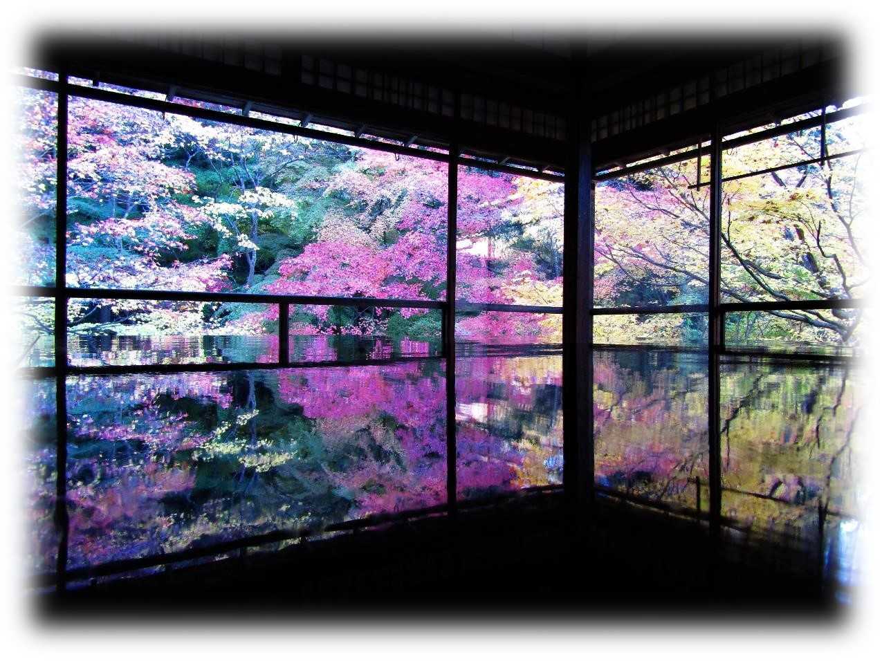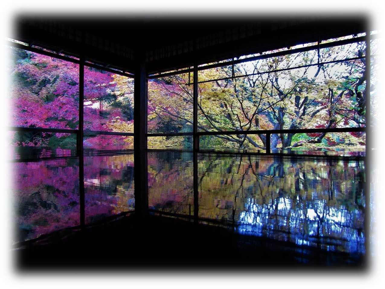 この黒漆の写経机に映り込む紅葉を見たいがために訪れています。