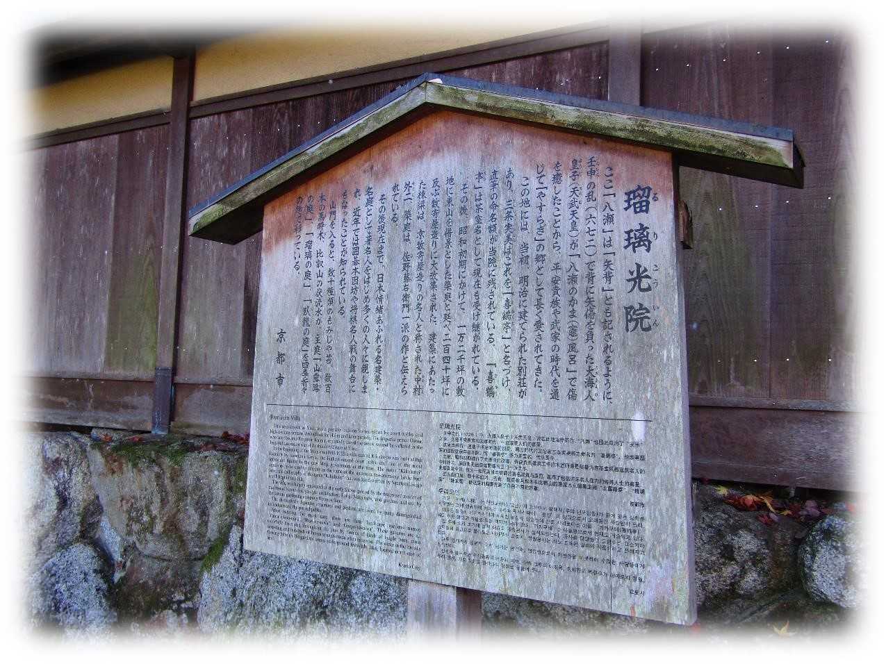 瑠璃光院は明治の実業家「田中源太郎」が設けた庵として始まり、後に明治の元勲三条実美が、当時の庵に「喜鶴亭」と名づけたと云う。