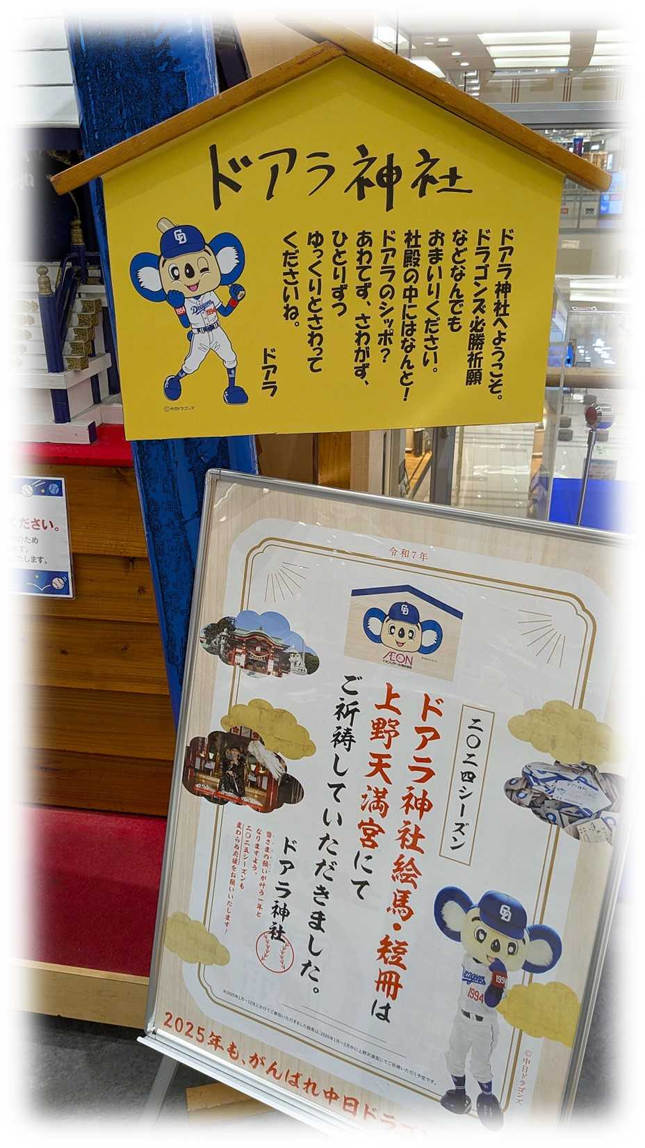 イオンモールウォーキングルートの2Fのドラゴンズベース前に神社が鎮座しています。