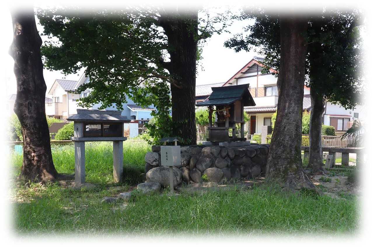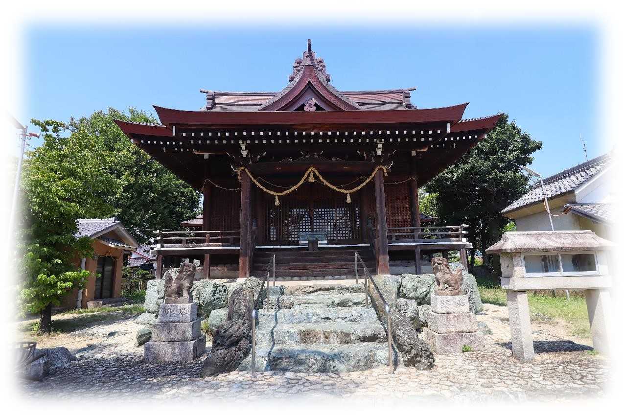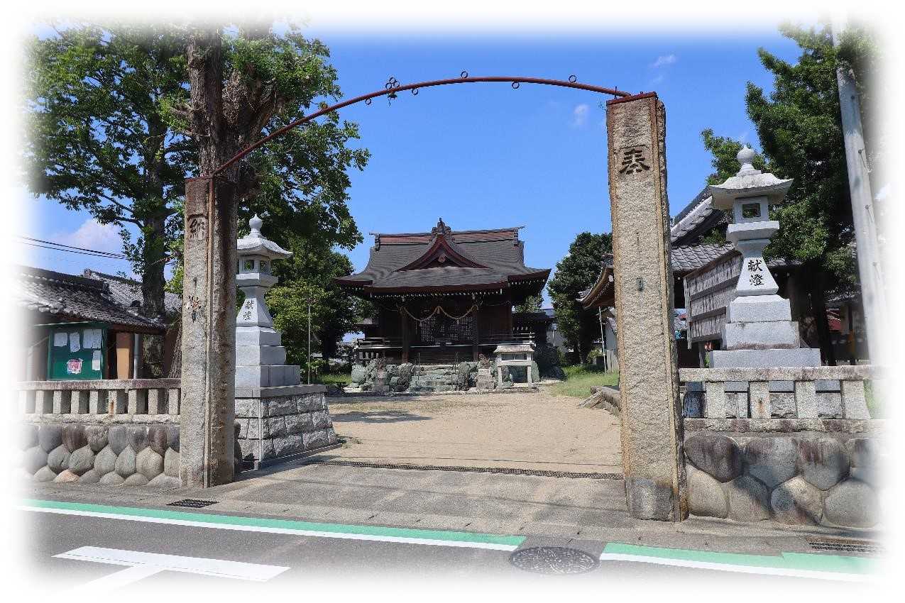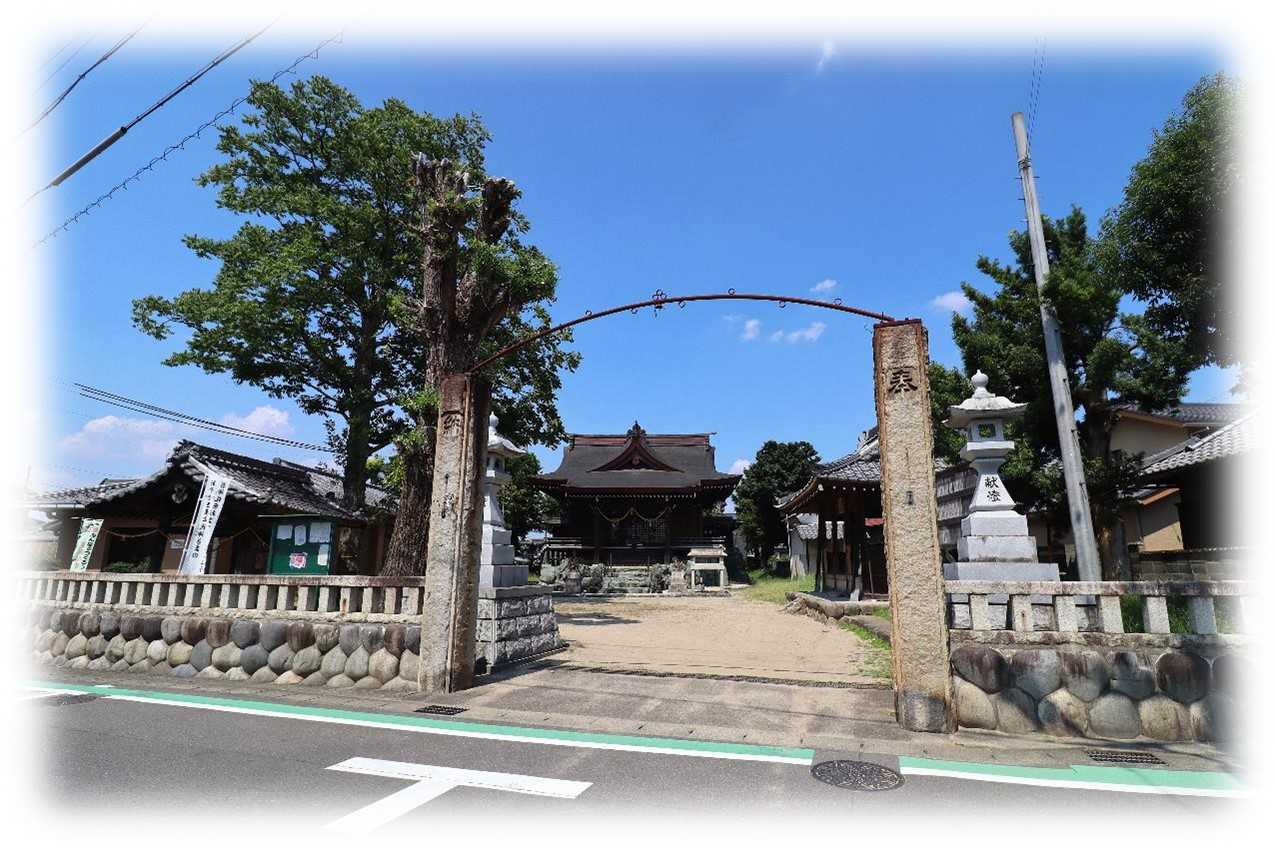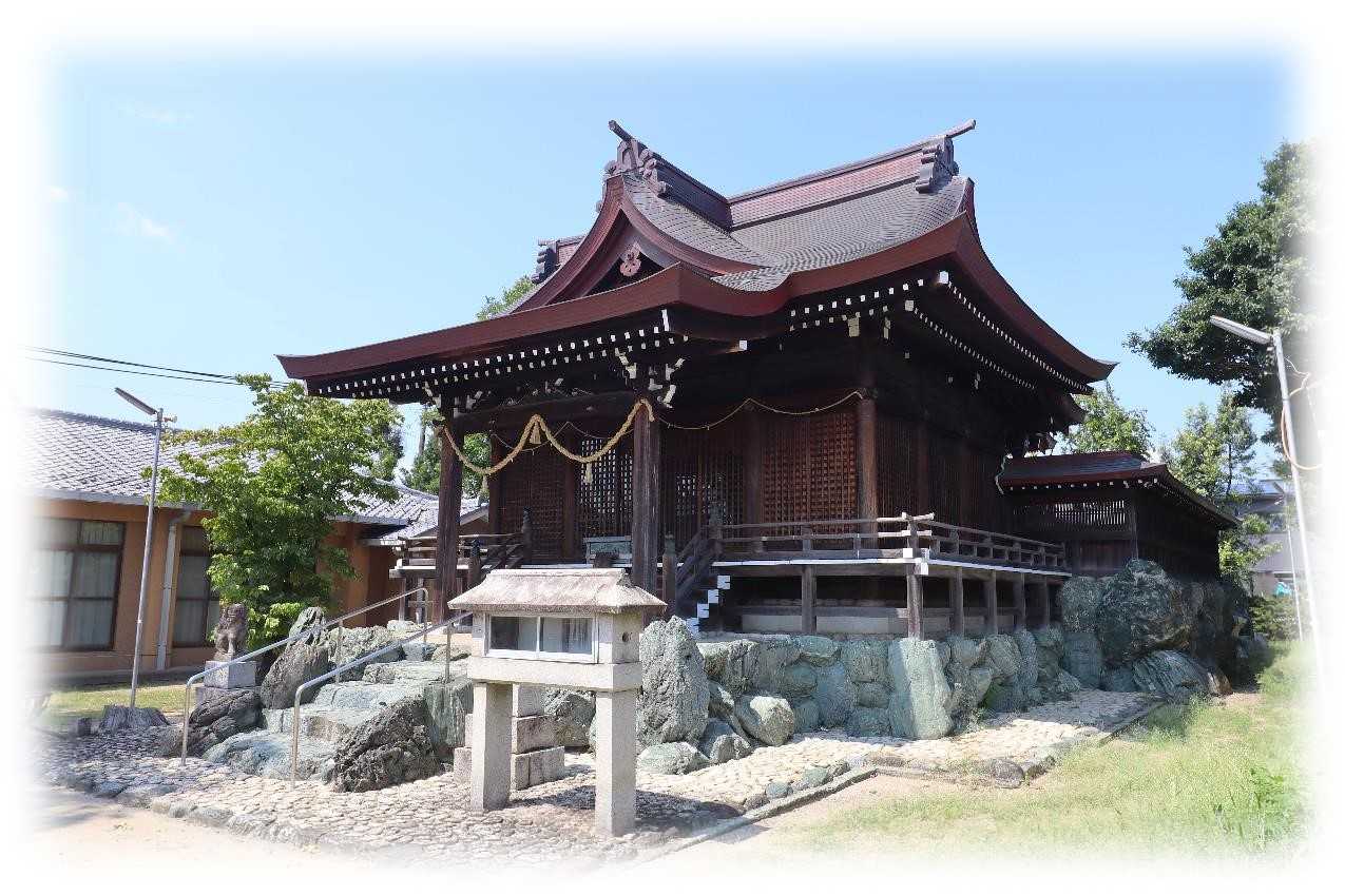 鎮座地を明治初期の地図を見ると、加納馬場村の西外れの田畑の先に小さな集落があり、そこが現在の加納馬場字西切にあたります。