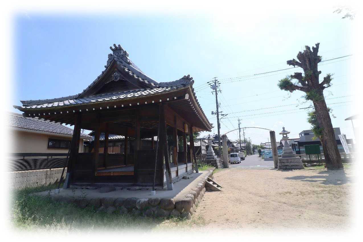 入母屋瓦葺の平入で、正面以外は腰壁が施された四方吹き抜けのものです。