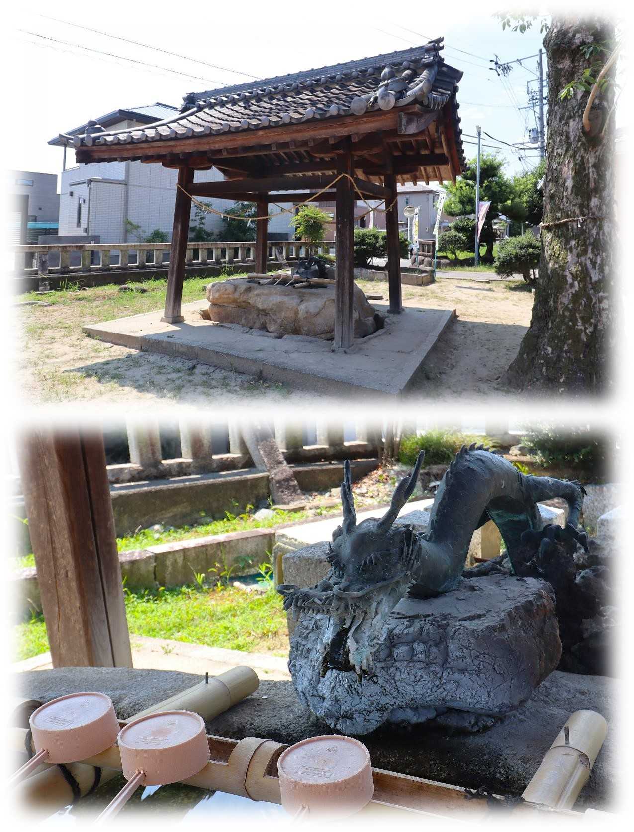 建物は境内左に手水舎、右手に神楽殿、正面の社殿と社殿左に境内社が祀られています。