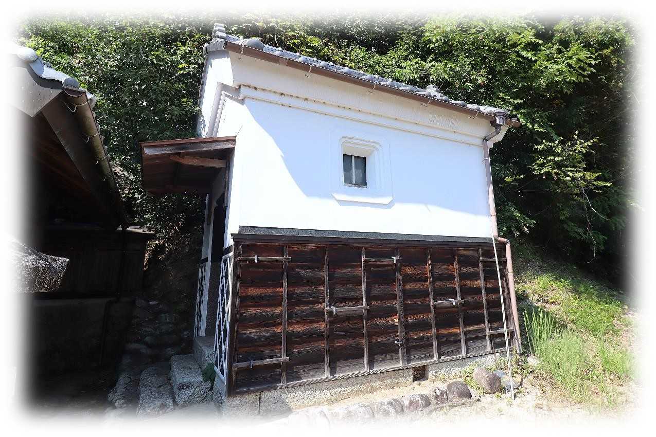 社務所がある境内より、更に高い山の斜面の上に社殿が建てられており、右手の白壁の建物が象徴的な存在となっています。