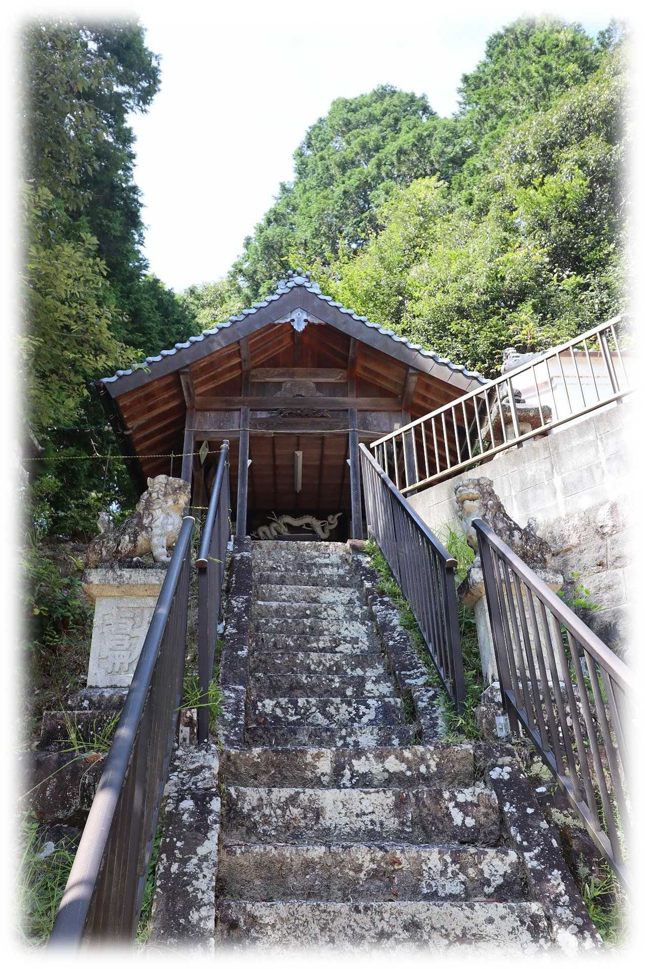 参拝社駐車場がないので、県道を300mほど阿摺ダムに進み、右手の旧道の入口付近に駐車し5分程歩いてきました。