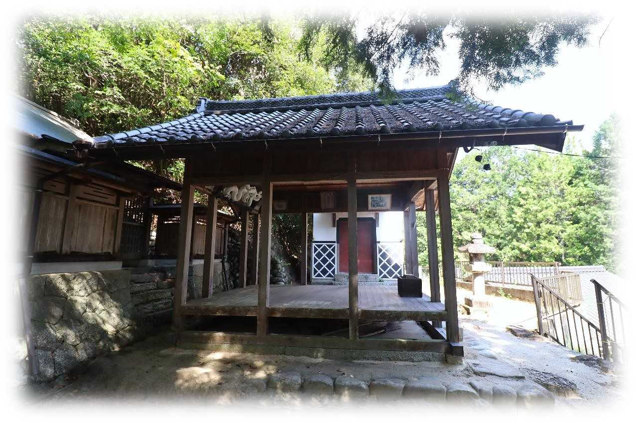 四方吹き抜けの切妻瓦葺の妻入り拝殿。