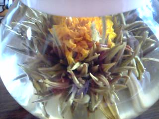 ←こんな感じの工芸茶。名前のとおりの茉莉花茶です。茉莉花茶にしては、香りが薄い気がしたな~。味は、緑茶が濃いかな?見た目は菊が入っているので、開いたらすごく綺麗!!ちょっと感動。花茶って言葉がぴったり(^^)水色撮るの忘れちゃいました。 横から見るとこんな感じ! 上から見るとこんな感じ!可愛いポットが欲しいよう~!こうゆうのとか! こうゆうの!!欲しい!