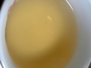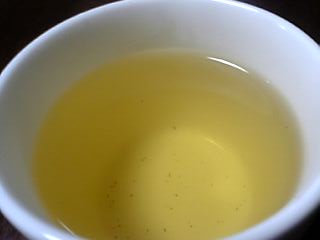 青茶かな?詳しくは忘れました。わかりやすく言うと、烏龍茶。 コク(?)があって後味が口の中に残ります。それでもとてもいい香り♪なので幸せな気分でごくごく飲めました。どっかのメーカーの烏龍茶の味に似てるような気がする。こんな水色。茶漉しが寿命かも…茶葉はこんな感じ!