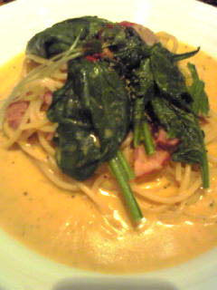 ほうれん草とベーコンのパンプキンクリームパスタ