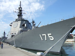 朝から用足しに舞鶴へ。帰りに海上自衛隊舞鶴地方隊の前を通ると護衛艦がたくさん停泊していたので見学してきました。天気がよかったせいかたくさんの方が見学にきてました。護衛艦「みょうこう」 海上自衛隊が所有する最強の護衛艦「イージス艦」4隻のうちの1隻で日本海側では唯一、舞鶴に配備されているそうです。後方からの「みょうこう」「みょうこう」は排水量7250t、全長161m、最大幅21m、最大速力30ノット(約55km/h)、乗員約300名。装備としてはハープーン対艦ミサイル、対空・対潜ミサイル垂直発射装置、3連装短魚雷発射管、127mm単装速射砲、高性能20mm機関砲などだが、それ以上にイージス艦の真髄は、目標捜索、探知、識別、ミサイル誘導、攻撃までを、艦橋側面に付いている六角形のSPYレーダーとコンピューターによって一括処理する対空ミサイル・システムにあり、対空防衛の主力だそうです。このような装備の護衛艦が日本に4隻とは多いのか少ないのか、必要なのか不要なのかはわかりませんが、このような装備を使用することがないよう切に願うオヤヂでした