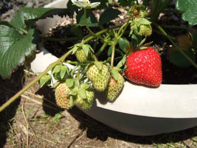 ゴールデンウイークから育てていた我が家のいちごがついに収穫できるまでになりました!1個ではありますが、大きく真っ赤になり食べごろです。1個また1個と順番に真っ赤になり、昨日5個目を収穫しましたョ。甘酸っぱくてとってもおいしかったそうです。全部子供が食べちゃいました。育ての父の口には、入りません。でも愛情込めて育てたので、食べる事はできないなぁ。。同時に植えたトマトや枝豆も順調に育っています。