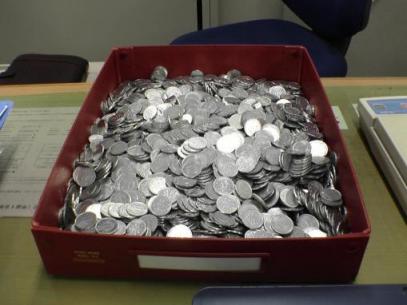 オヤヂの職場では地域からお願いされて昨年末からある「運動」に参加している。それはユネスコ協会が行っている「世界寺子屋運動」。この運動は世界に文字の読み書きができない人が7億8,100万人もいて、このような子どもたちや大人が「学びの場=寺子屋」で読み書きや算数を学べるように、教育のチャンスを支援する運動だそうだ。で、地域からは書き損じのハガキの回収と、職員からの1円玉募金を呼びかけて欲しいと。。。オヤヂの職場は60人弱しかいないので、まぁそんなに集まらんだろうな・・・と思っていたら、な、な、ナント!!こんなに集まっちゃいました。なんと!ぜ~んぶ1円玉で3038枚!これがパチスロのメダルだったら約6万円やないか~~!!でも1円玉なんで、3038円。。^^;世の中捨てたもんじゃないですね。これで一人でも読み書きできる人が増えたら嬉しいことです。お~ぃ政治資金虚偽報告&ムダ使いしてる政治家!裏金作りのプロのお役所のおエライさ~ん、税金を無駄遣いすることばっか考えないで、世の中のためになるような使い方してくれよ~!