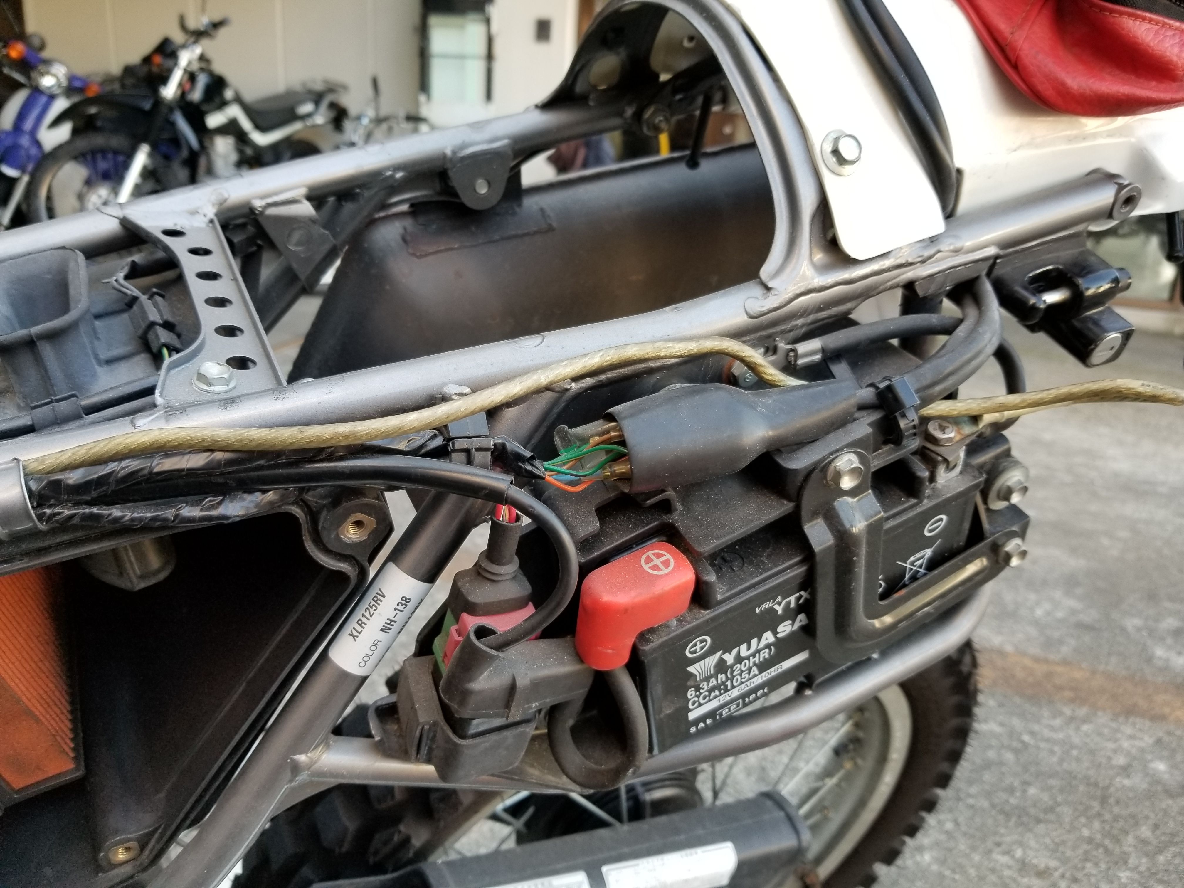 太そうな配線をジャンクボックスから拾って、バッテリーとヘッドカバーに