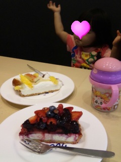 今日はママが「美味しいケーキが食べた~い(^O^)」 と言ったので、ヒイバーちゃんとおばあちゃんと車でお出かけしました。最初に行ったお店は平日の昼間というのに一時間半待ちで(*_*)、仕方なく他のお店に遠出しました。ここもママが大好きなお店だそうです。お庭もかわいいしケーキも美味しいそうです。ママはイチジクのショートケーキとカシスアイスティー頼みました。みゆちはママのを少しもらうつもりでしたが、あまりにも美味しかったので九割がた食べてしまいました。ママ!!食べたかったらみゆちの分も一人前頼んでね!!ごちそうさまでした。(^O^)/