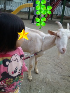 ママの日記今日はバスにゆられて小動物との触れ合いに行ってきました。鞄を肩にかけ、エルゴで。汚れるかもしれないから着替えも入れて。荷物多めです。我ながら頑張ってるなと自画自賛。ついたらさっそくヤギ、羊、犬にご挨拶。なでなで~。ニワトリやアヒルやガチョウ、ウサギやハムスター見て大興奮。次は飼育員さんにウサギのだきかたや注意事項を聞く。ウサギは後ろから抱っこする等では早速触れ合いへ。みゆち、飼育員さんの話を聞いていたのか 言われた通に抱こうとしてた(>_<)びっくり。後ろから掴んでもちあげる。さすがに持ち上がらなかったけど。他にも積極的にしゃがんでウサギをヨシヨシするし、おいかけていくし。餌あげるし。ヨチヨチ歩いて、ほとんど手を繋いでしか歩けないのに、結構頑張って歩いて触れ合いしてました。今まで何回も触れ合いはさせてるけど、今日みたいな反応は初めてでびっくりしました。今まではウサギとの触れ合いも自分から積極的に行く事はなく、どちらかというと関心なし(-.-;)だったのに。成長したなー。ママとしては最高に満足な日でした。今日増えた言葉・あっち(と言って指指して道案内する)・おいしいできた事・ウサギを後ろから捕まえる・餌をやる ・着ぐるみに興味を持つ・自分から近づいて親に催促される前に動物ををヨシヨシする