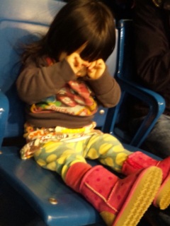 ご飯を食べてトイザらスへ移動。 この移動がまた大変でした。みゆち、歩きたがる。人が多いのに手を繋いだり振りほどいたりしながら(*_*) 寄り道もしたがる(>_<)。目的地と違う方向へ行くし(*_*)。坂が好きで坂を10往復ぐらいしてた。止まったりしゃがんだりお店入ったり。お陰で行ったことがない方面に行けてお店新発見!!5分ぐらいで行ける道のりが1時間ぐらいかかりました。 トイザらスではママが用事を済ませた後みゆちの自由時間となり遊びに大暴走してました。パパの押すショッピングカート押したり(しかも『パパは触るな。自分で押したいの』ってパパの手を振り払ってた)乗り物コーナーで三輪車に乗ったり車に乗ったりおもちゃのカート押しながら犬のおもちゃ引っ張ったり。滑り台滑ったり。クリスマス前ですごく混んでて他の子供も同じようにあそびに大暴走してるので、すごく大変でした。なかなか帰ろうとしてくれないのでついには無理矢理抱っこし、反り返って泣いているのを抱えてレジに行きました。帰りも駅で階段上る!下りる!!ってしてました。危ないから階段を見せないようにしてエレベーターに乗ろうとしたけど、大人の目論見はばれてて『エレベーターじゃない!!こっちの階段!!』って階段に連れていかれました。駅の長い階段を上り切ったり下り切ったりしました。家に着いたら19時回っていました。17時ぐらいに帰る予定だったのに。今日は今までに無かったみゆちの姿を見れました。段々幼児になっていっているのがよくわかります。こちらは抱っこして歩かなくなった分身体は楽だけど時間が三倍くらいかかるようになり困っています。