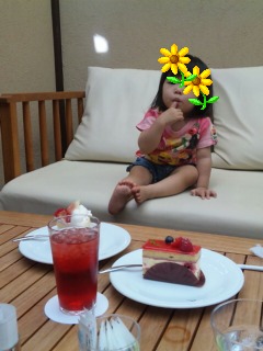 ママはイチジクのショートケーキとカシスアイスティー頼みました。
