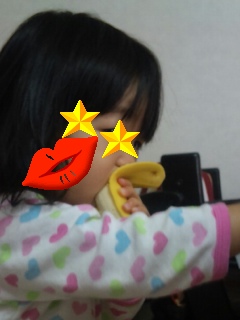 初めてバナナを食べた時は一口大にしてママにスプーンで口に運んでもらってました。