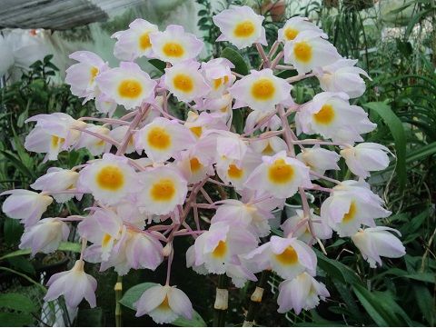 Milt.bluntiiミルトニア属の原種、ブルンティーです。ブラジルの南東部に自生する着生ランです。クロウェシーとスペクタビリスの自然交雑種とされています。Den.ellipsophyllum デンドロビューム属の原種、エリプソフィラムです。 ミャンマー、タイ 、ラオス、ベトナム、雲南の 標高300~1000mに自生する着生ラン、香りがあります。先月から何度か載せていますがまた別の花です(^^;)今日は晴れのち曇りで12.7℃~27.9℃と朝は寒かったです。今は曇って明朝は冷え込まず明日は20~30℃予報なので夕方のハウス閉めはしなくてもOKのようです。 にほんブログ村 メール欄