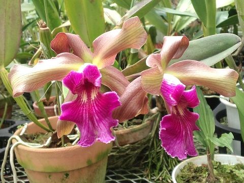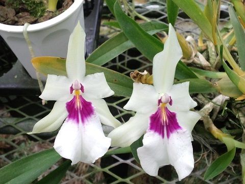 C.Massangeanaカトレヤ属の交配種、マッサンゲアナです。原種同士、シレリアナとテネブロサの交配です。Rdza.venustaロドリゲッチア属の原種、ベナスタ、ブラジルの原産です。根が外に出てたくさん下がります。Milt.spectabilis fma. semi-alba ミルトニア属の原種、スペクタビリス・セミアルバです。 ブラジルとベネズエラ に自生します。今日は曇りのち晴れ、20.0~32.8℃と幾分涼しくなりました。午後からまた1時間ほど草刈りをしてから、頼まれていた会員宅に棚用の網(エキスパンドメタル)を配達に行ってきました。明日は晴れのち曇りで一時雨、20~32℃の予報です。 にほんブログ村 メール欄