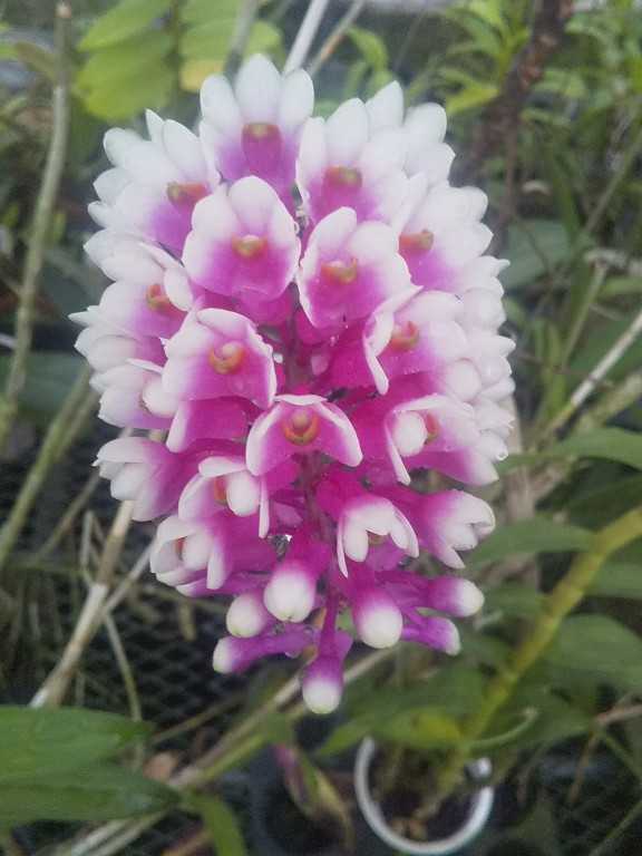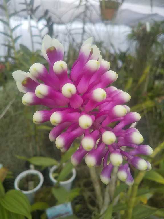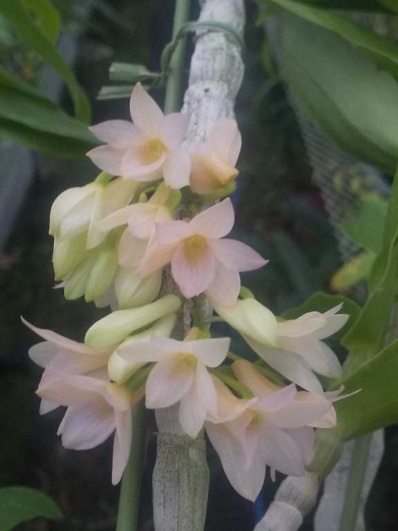 Rlc.Sylvia Fry'Hemeya'FCC/AOSリンコレリオカトレヤ(旧ブラソレリオカトレヤ)属の交配種、シルビア・フライ'ヘメヤ'FCC/ AOSです。Acp.rigidaアカンペ属の原種、リギダです。バングラデシュ、インド、ネパール、ブータン、台湾、スリランカ、カンボジア、ミャンマー、タイ、マレーシア、フィリピン、ベトナム、中国に自生する大型の単茎種です。株の割に花は小さく、花径2cmしかありませんがリーフスパンは55cmと大柄です(^^;)Den.Formidibleデンドロビューム属の交配種、フォーミディブル原種同士、フォーモサムとインファンディブラムの交配、普通は初夏咲きなので狂い咲きと思います。今日はよく晴れて3.4~13.2℃でした。今日は近くの農免道路の草刈りをしました。明日は1~15℃の予報、霜注意報が出ています。にほんブログ村 メール欄