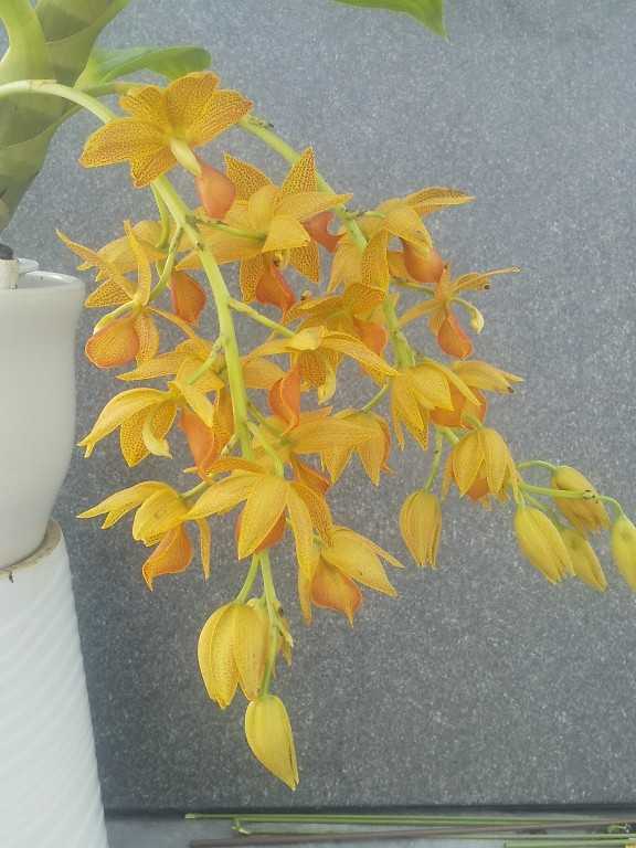 Phrag.Andean Fireフラグミペディウム属の交配種、アンディーン・ファイヤーです。原種同士、ベッセーとリンドレヤナムの交配です。Scgl.imbricataスカフィグロティス(旧ヘキシセア)属の原種、インブリカータです。メキシコからペルーにかけての1500m以下に自生します。6日前に咲き始めた花が満開になりました。Onc.Nanboh Waltz ‘Boso Sweet’オンシジューム属の交配種、ナンボー・ワルツ‘ボーソー・スウィート’、先月末に咲きはじめを載せましたが開花33輪、つぼみ45輪となりました。今日は朝からずっと雨が降っていて12.5~14.3℃と寒い日になりました。明日は曇りで13~26℃と暑くなる予報です。にほんブログ村 メール欄