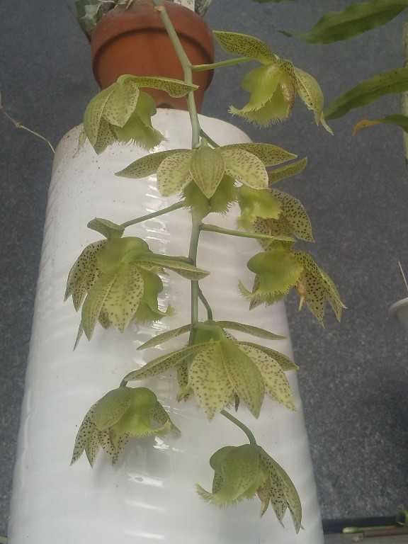 Epi.porpaxエピデンドラム属の原種、ポーパックスです。メキシコ~ペルーの標高1500m以下に自生する着生ランです。名無しのミディー胡蝶蘭Phrag.Cardinaleフラグミペディウム属の交配種、カーディナルです。原種のシリミーが4分の3、ロンギフォリウムが4分の1です。今日は晴れ時々曇りで4.6~16.3℃でした。明日は晴れ予報ですが3~17℃で霜注意報が出ています。今年は暑かったのでハヤトウリが9月末になってやっと花が咲き始めたので実が大きくなってないのにもう霜に当たるとためになっちゃいます。どうしたものか、今夜のうちに大きいところ10個だけでも来年の種イモ用に収穫するかな・・・にほんブログ村 メール欄