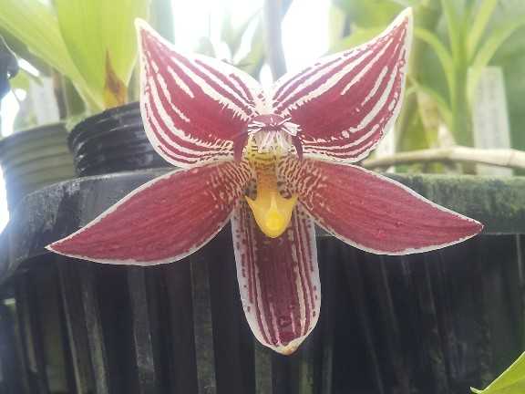 Rlc.Amazing Thailandリンコレリオカトレヤ属の交配種、アメージング・タイランドです。逆さに咲いてしまい写真を回転させています(^^;)Epi.summerhayesii fma.albumエピデントラム属の原種、スメルヘイシー,アルバムです。コスタリカ、パナマ、コロンビア、ペルーの1200~1800mに自生します。葉はやや大きめですが草丈は20~30cm程度で花を付けてくれます。普通種は紫褐色を帯びます。Brat.Charles M. Fitch‘Dark Monarch’ブラトニア(旧ミルタシア)属の交配種、チャールズ・M・フィッチ'ダーク・モナーク'です。ブラシア属ヴェルコーサにミルトニア属スペクタビリスをかけた原種同士の交配、5輪咲いて満開です。棚下のハエマンサス(=マユハケオモト、フデオモト)今日は曇り時々晴れで9.8~23.0℃でした。明日は曇りで12~20℃の予報です。にほんブログ村 メール欄