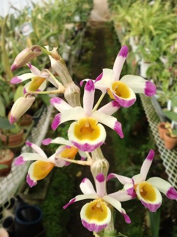 デンドロビューム属の交配種、シンイン・フロスティーマリーです。