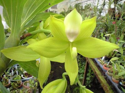 スワンオーキッド(白鳥蘭)と呼ばれ、普通はグリーン花ですが、