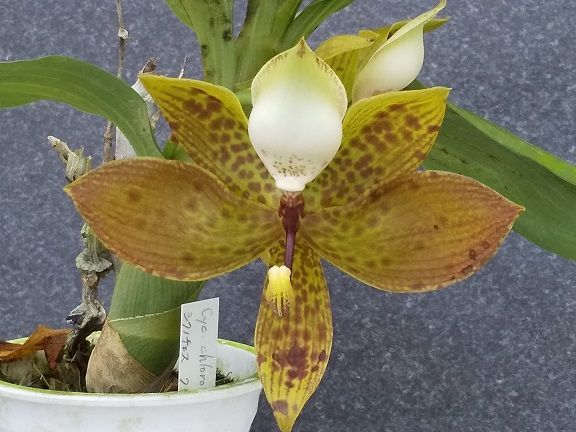 シクノチェス属の原種、クロロキロン‘マダラ’です。