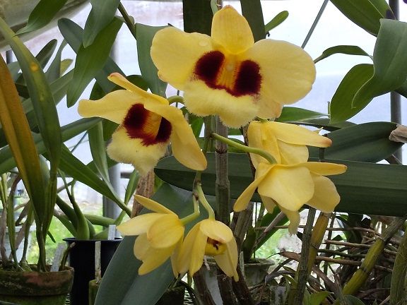 デンドロビューム属の交配種、ガットン・サンレイです。