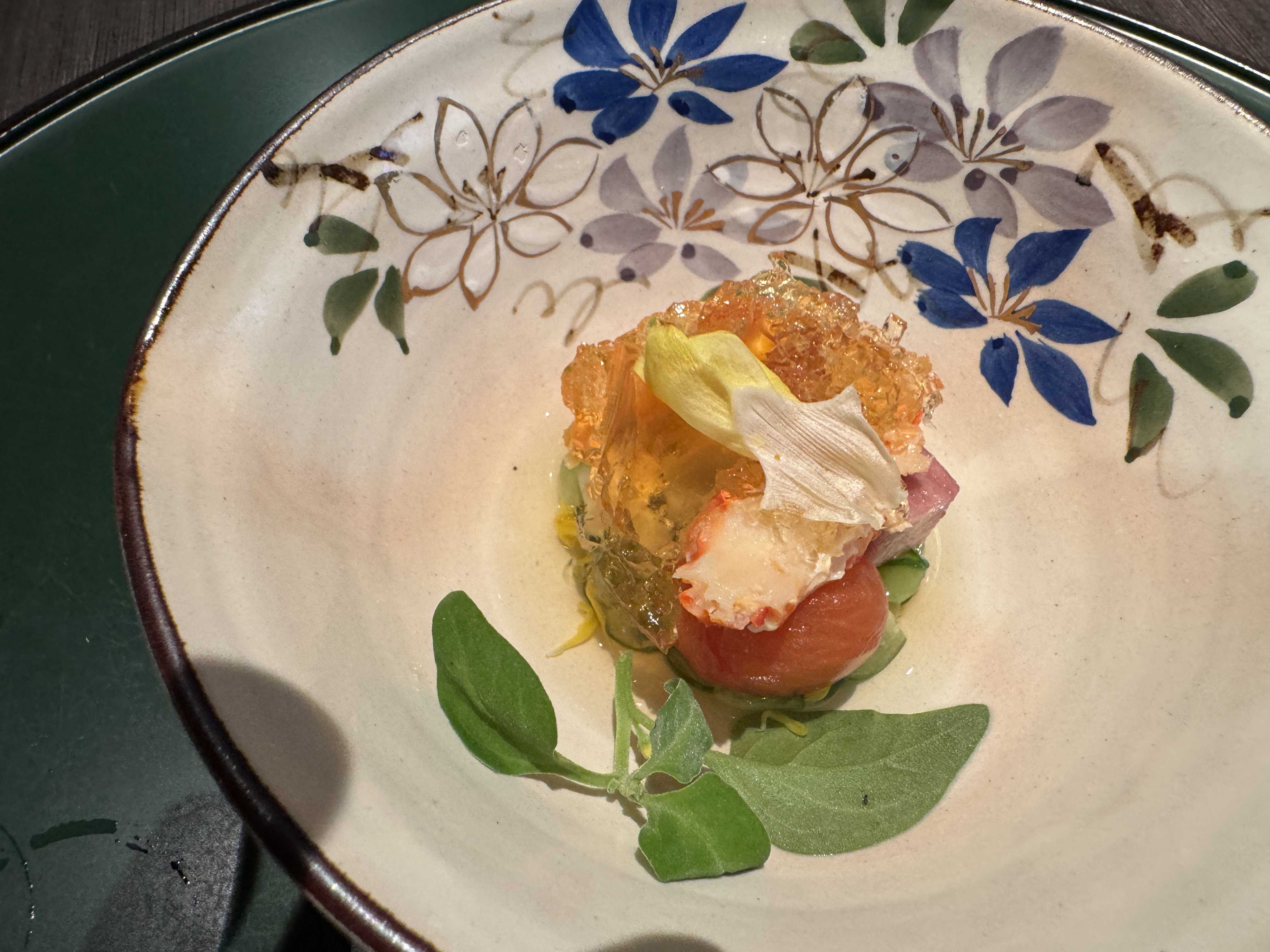 花咲ガニのジュレをかけたミニトマト・長芋など