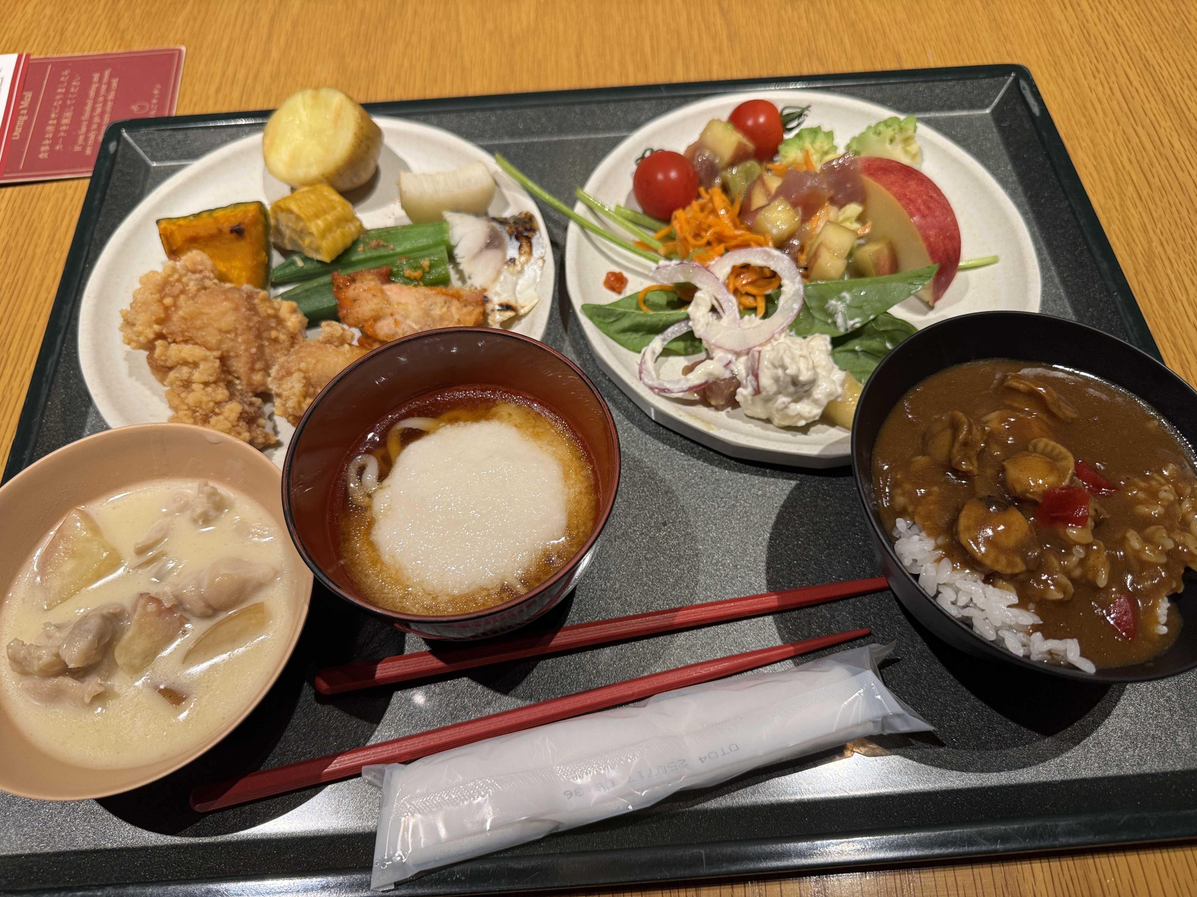 空揚げやカレーなどが安めのものが、お箸やお盆置き場のすぐそばにあり、ごっそり取ってしまった。これもうまく考えられており、してやられてしまった。