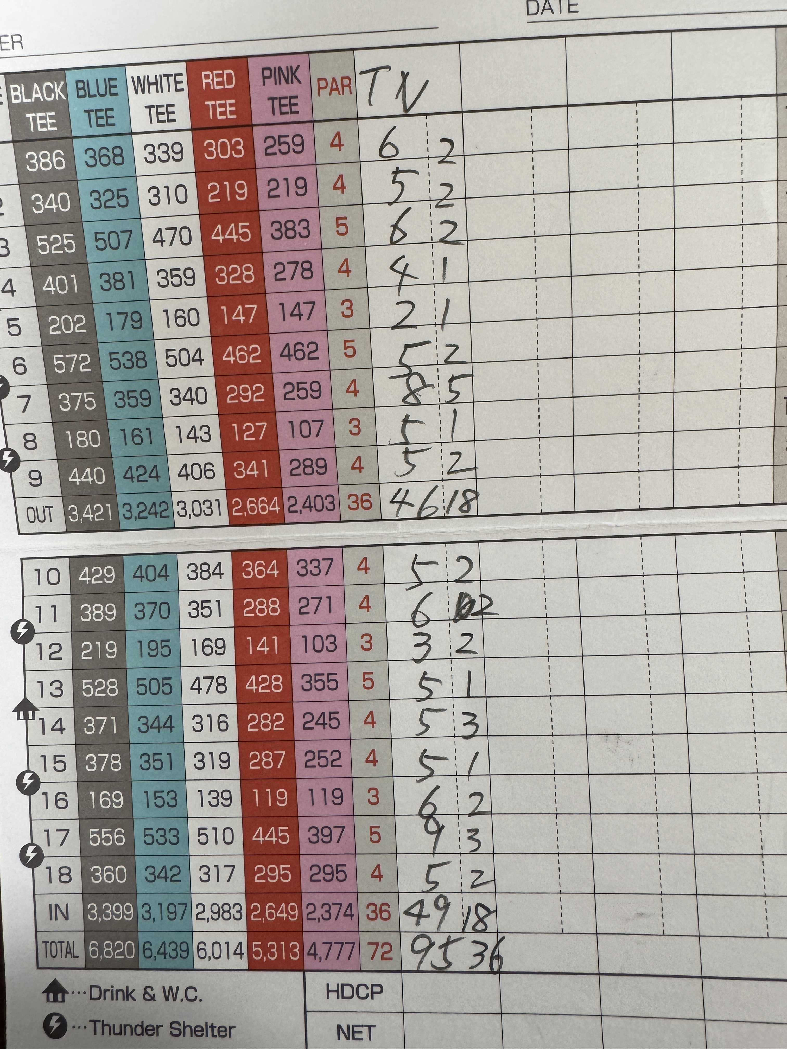 全ての組がスループレーで服装も何でもOKの欧米スタイル。今日は祝日ですが、待ち時間は0とスイスイプレー。15800円(現金のみ)と完全セルフではやや高めだが、食堂の一番高いメニューが1350円と、プレー代以外の出費は少ない。