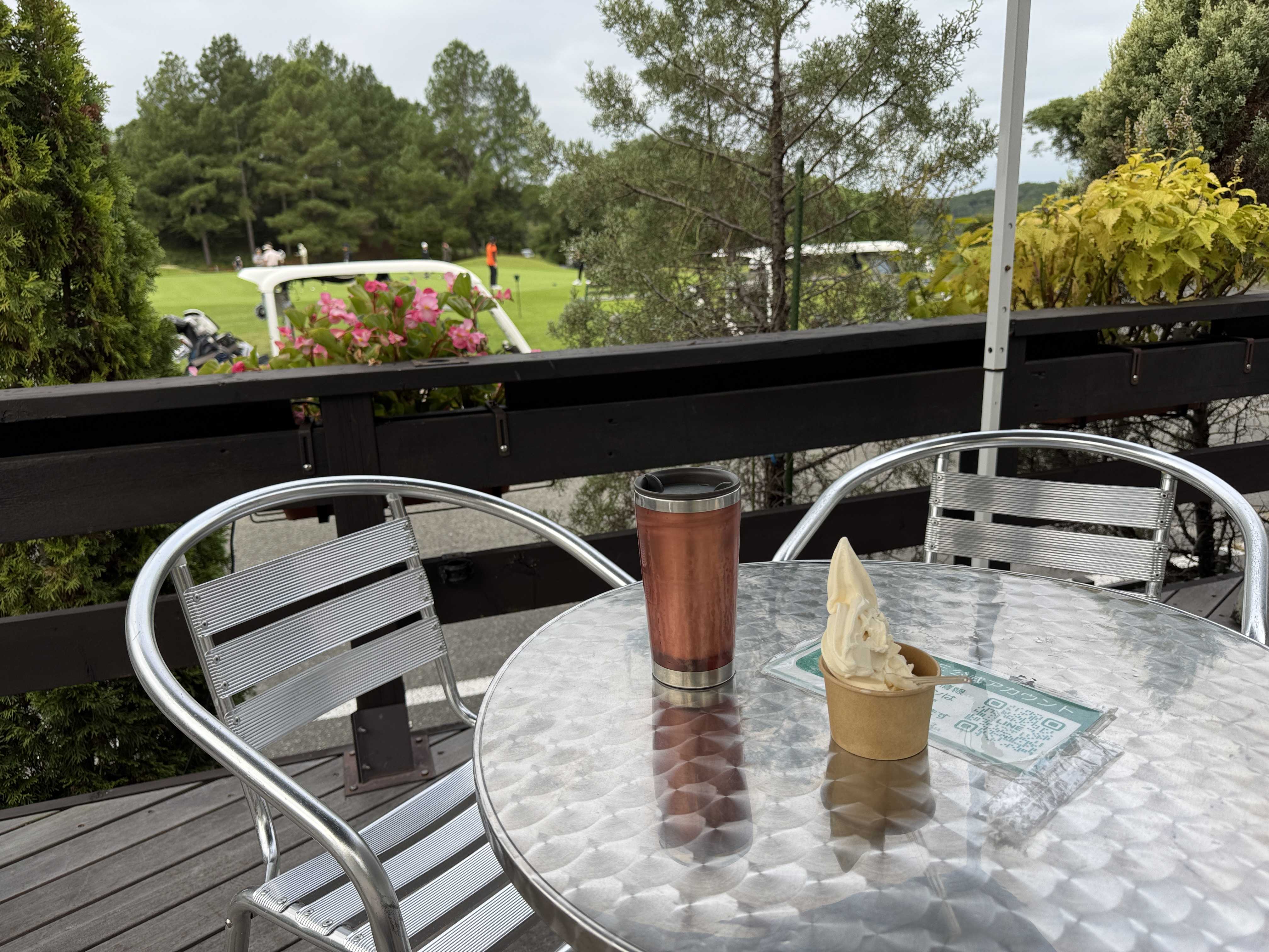 ハーフの小休止でY君はソフトクリームの止め方がわからず、悲鳴を上げながら私の3倍以上に盛り上げてました。