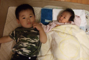 ユズちゃん誕生から、早4ヵ月半。時が経つのが、メチャクチャ早い!!!二人とも、本当に大きくなったなぁ。ヒィ兄ちゃんはこの夏で、足のサイズが14.5→16センチに身長も伸びました。昨日は大きな書店へ行ったら、店に入ったとたん勝手に走って行っちゃって・・・探してもいなくて、ママ・パニック!!!一番奥にある子供の本コーナーにいたんだけど・・・足の速さにびっくりした。そして、初めて《誘拐》という恐怖を感じたユズちゃんは9月初旬に初めての寝返りに成功本当に活発によく動き、そして良く笑顔を見せてくれる子髪は兄ちゃんみたいに多くて、現在松岡クンヘア(TOKIO)です。一日が本当に早くて、毎日なんだか忙しい。で。低血圧がひどくなった私朝、目が覚めても中々起き上がる事が出来ません。あまりの不調に病院へ行ったのですが血液検査の結果は問題なし。低血圧がひどいってだけで・・・。手術の跡のケロイドも、やっぱり出てきちゃったし。カユイし。毎日本当に大変。でも、子供たちは本当に可愛いパパは相変わらずゴルフがお好き内緒で高いお買い物もしてるようだしママもたまには一人で一日、どこか楽しいところへ行きたい。化粧もしないし、今年は服も買わない。趣味もない。子供にはお金を使ってるかもしれないけど、自分にはあまり投資してないと思う。ママ、一体何のために働いているのか・・・。あ。 グチっちゃいました。