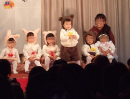 今日はヒィ君のお遊戯会でした本日のお天気は結構ポカポカで、会場の出入口開けっ放しでも大丈夫でした。で 。今年は・・・お返事もちゃんと出来ました『げんこつ山のたぬきさん』も、少し出来ました。お遊戯の『パチリコパチリンなんだろな』も、ゴキゲンで踊っていましたみんな、可愛かったです~今年も舞台から離れていたトコにいたので、あまりきれいに撮れなかった・・・来年はユズちゃんもお遊戯会に出るから、来年こそは席取りをしてみようかと思います。・・・ パパ、が去年はまだ歩けなかったヒィ君。今年はバッチリ動き回っていました。去年のお遊戯会は、ママのおなかの中にはユズちゃんがいて、切迫流産中で、つわりもきつかった中での観劇(!?)だったっけ・・・。(今年はユズちゃん、おばぁちゃんちでお留守番)一年って、早いなぁ~。もうすぐ今年も終わるしね来年の今日も、幸せな気持ちでいられたらいいなと、願います