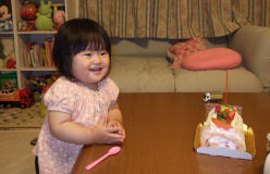 昨夜の模様を、写真でご紹介~パーティーハットだって、被っちゃいましたよ!(園の帰りにダイソーに寄って、こんなハットをハッと発見(…サムイっすか)ホントはストローを買いに行った訳ですが、レジにこのゾウさん帽が飾ってあって…『 これは、ヒィ君が喜ぶわ~!!』と、母はついつい買ってしまいました。車で待っていたヒィ君に早速渡すと…『おぉ~!パオーン!パォーン!』と、大層気に入ったご様子。その足で、 も追加買いしちゃいましたこんなカンジで、ケーキくらいしか特別に用意しなかったけど、こじんまりとしながらも、ハッピーバースディを歌ってろうそくの灯を吹き消して(ヒィ君が)、おめでとうを心から祝って…美味しいケーキを皆で食べて、幸せなを過ごしました。………でもユズちゃん、ギャン泣きしてたけどね。(ママのおっぱいが欲しくて。でもママは家事で忙しかったの~!ゴメンネ)ユズちゃん、1歳のお誕生日、おめでとう
