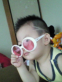 この夏、流行のカットで、お洒落なグラスで(駄菓子付、100円の品)ちょっと気取ってみたヒィ君通称「エグザイル・カット」な訳ですが(保育園の先生にも、言われた)…この写真を撮った直後、『m-floのVERBALに似てんな~』と思ったのは、私だけ!?そんな彼はまたしても下痢にて、保育園を一週間お休みです…。今月一週間も行ってないじゃん!(実家帰ってたりしたし)高い月謝になってしまいました