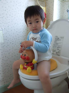 今朝、サンドウィッチを食べ終えたヒィ君に、『ウ○チ、出た?』と聞くと、ウンウンとうなずき…しかし、オムツの中をのぞくと、出ていない。『トイレ、行こうか~』と、トイレに誘ってみました。すると…トイレで、出来たではないですか~『スゴイじゃ~ん出来たじゃ~ん』と嬉しくてメチャクチャ褒めたら、ヒィ君もとっても嬉しそうでしたえらいぞ!!ヒィ君