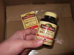 さっきの記事を投稿した途端…ピンポーン と、玄関チャイム。やってきたのは『ネイチャーメイド 植物ステロール』そう、先日モラタメのお試しで申し込んでいた商品です!この小さな商品がこんなに大きな箱に入ってやってきました。一緒に頼んだ『メガシャキ』も同梱かと思ったよ送料はいいんですけど…もう少し梱包を考えたほうがいいと思いました。もったいないです。エコしましょうよ。簡易梱包でもいいのではでは…な~んて。さっきTVでゴミ減量しよう!っての観たから余計に思ってしまいました。それはさておき。本題、本題。早速あけて試してみました。粒の大きさ、参考になりますか?他の皆さんのコメントでは、粒が大きすぎ~とありましたが…確かに、大きいですでも、実際飲んでみると、私はすんなり飲めました♪ちなみに、4粒いちどに飲みました。ボトルを開けた時に、若干匂いが気になりました。なんというか…青臭い…違うな…健康食品独特の匂いというか…飲んでしまえば、まったく気にならないのですが。参考までに。私はこれなら続けられそう!と、思える商品です1日4粒。一ヶ月、続けてみま~す