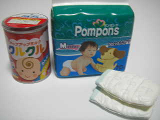 ちっちゃい物コレクションの紹介です。 リーメント ぷちドラッグストア 4.ママと2人でお買い物ハナちゃんオムツの中身がとりだせたり、綿棒が1本1本ばらけたりするんです。綿棒の長さは1センチ足らず。ベビーオイルや哺乳瓶もとってもかわいい。オムツのパッケージには「ムーン」と書いてある。色違いのほうは「ポンポス」ネーミングも笑えます。↓こっちは色違いバージョン波くんが女の子だったら一緒におままごとして遊べたのになぁ。(小さすぎるか)