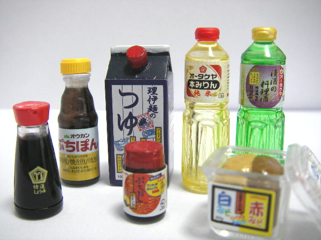 波ママはちっちゃいもののなかで、実際家にあるミニチュア版のものが大好きです本物とミニチュアを並べて一人楽しく笑っています。今日はミニチュアの調味料を集めてみました。和食の必需品ですメーカーが違うので、マヨネーズちょっとおおきいいけど・・細かいとこまでよくできてます。洋風調味料アジアン系調味料大きさの比較はこんなかんじ。